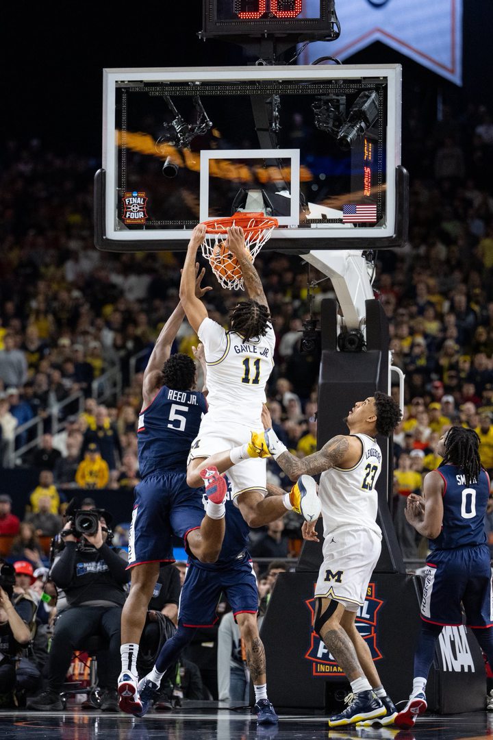Michigan controlled the game where it mattered most — inside. The Wolverines dominated the paint with a 36–22 scoring advantage, overpowering UConn in the post and limiting high-percentage opportunities. UConn struggled to find rhythm offensively, converting just 9 of 33 three-point attempts and an uncharacteristic 4 of 10 on dunks and layups. Michigan’s defense proved decisive in the second half, recording four key blocks and consistently disrupting UConn’s offensive flow. The Wolverines led the entire second half, refusing to surrender control despite multiple Huskies rallies. Elliot Cadeau led all scorers with 19 points, adding three rebounds and three assists. Morez Johnson Jr. delivered a dominant inside presence with a double-double (12 points, 10 rebounds) along with two blocks.